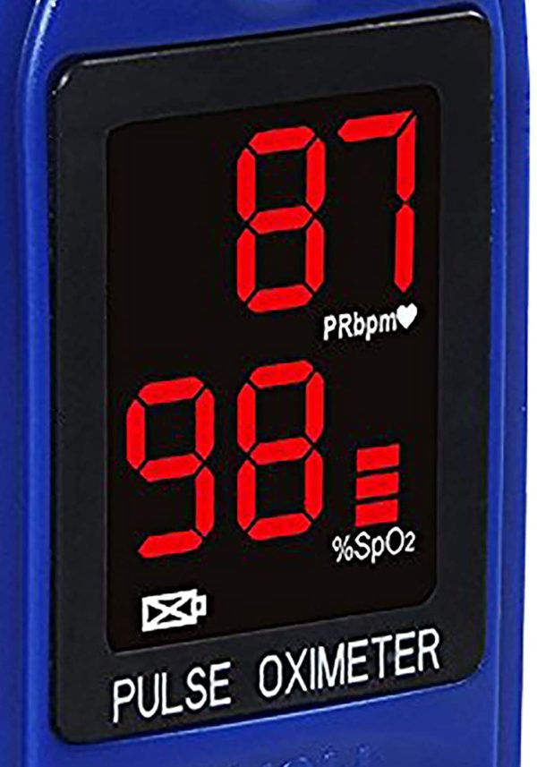 Concord Basics Blue Fingertip Pulse Oximeter Blood Oxygen Saturation Monitor with Carrying Case, Batteries, Silicone Cover and Lanyard