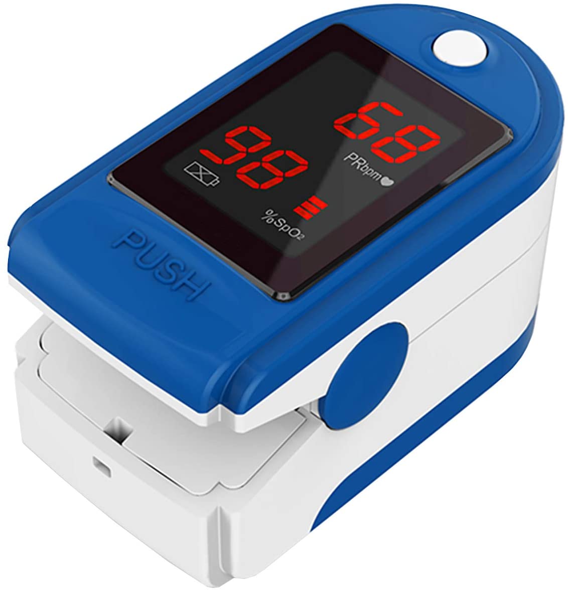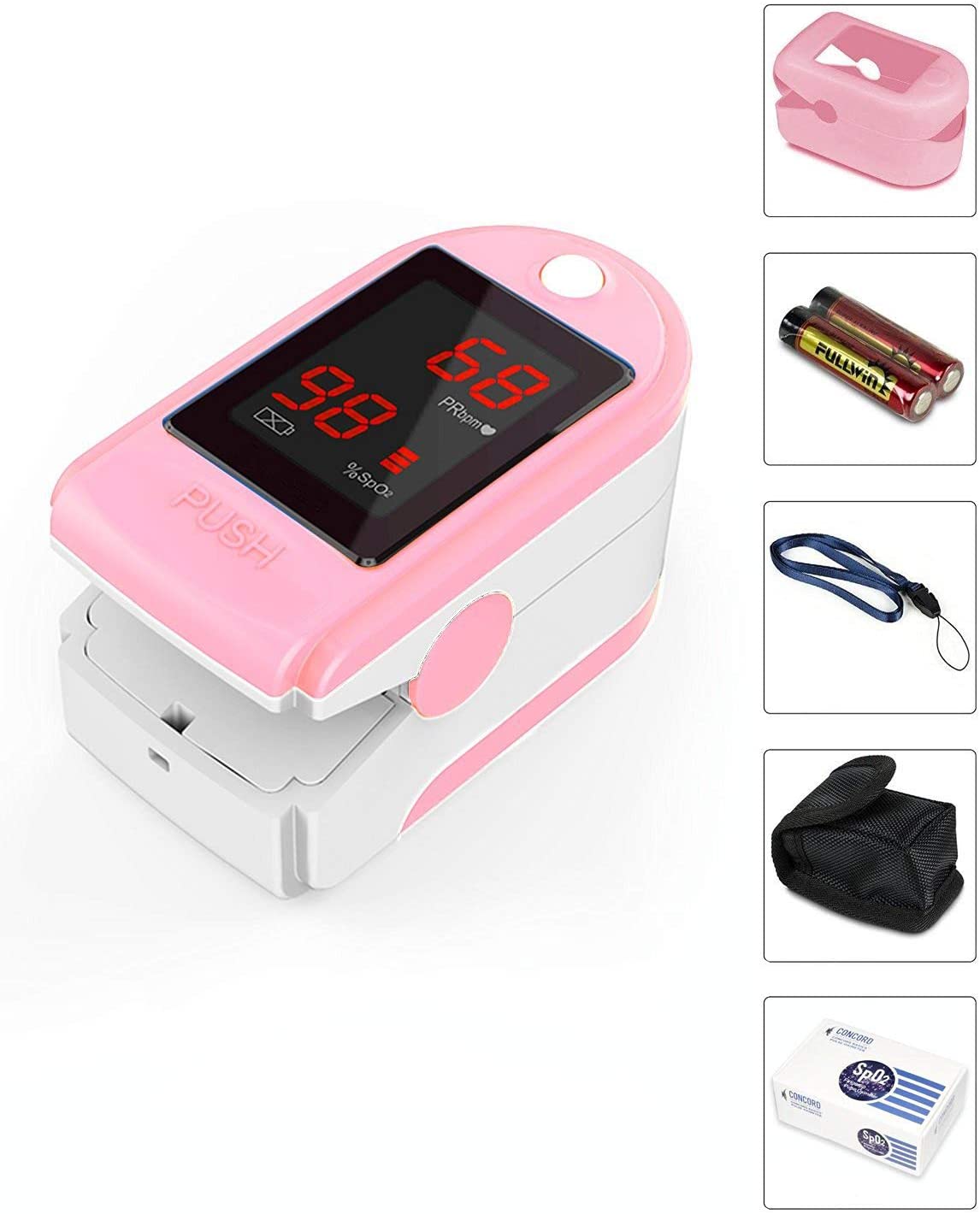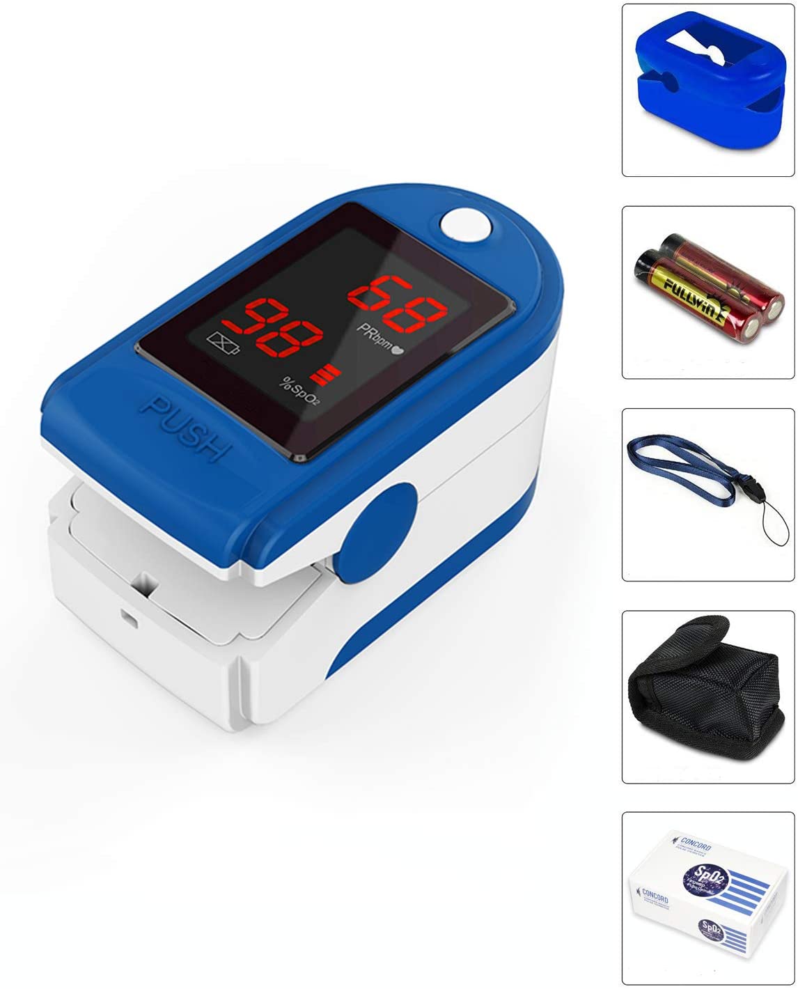 Concord Basics Blue Fingertip Pulse Oximeter Blood Oxygen Saturation Monitor with Carrying Case, Batteries, Silicone Cover and Lanyard